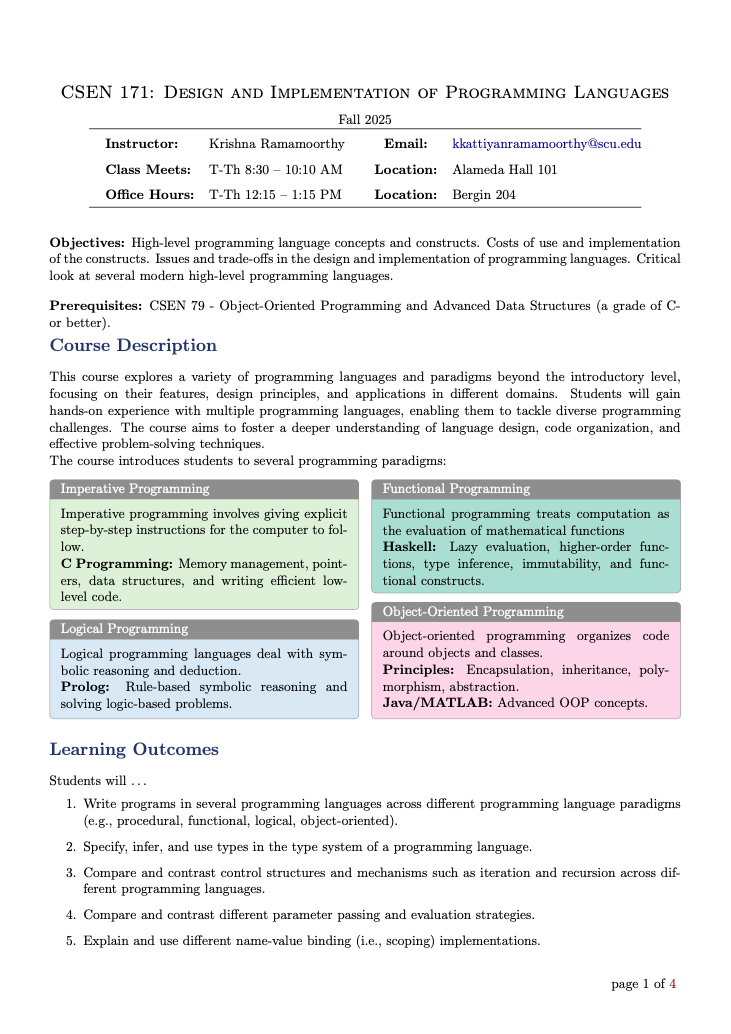 CSEN 171: Programming Languages